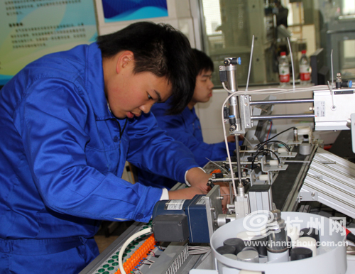 以上组图为杭州市中策职业学校作为电子一体化设备组装与调试项目比赛考场之一,十余位来自近各职校选送的优秀学生选手,他们通过现场元件选择、装配、切割、调试等一系列程序有条不紊地参与比赛。