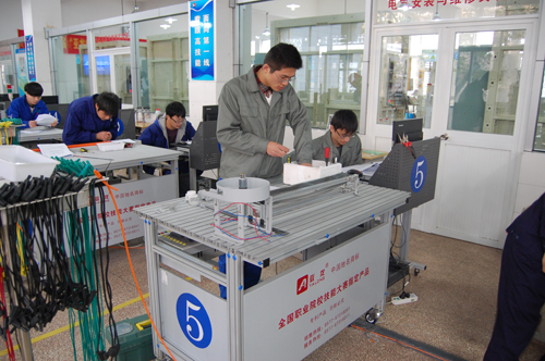 电子电工机电一体化设备组装与调试——杭州市中策职校 陈逸飞(左)、张本杰(右)