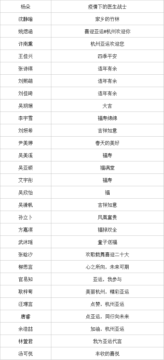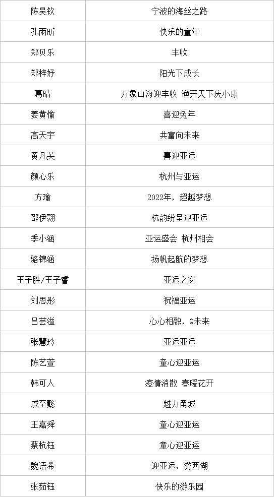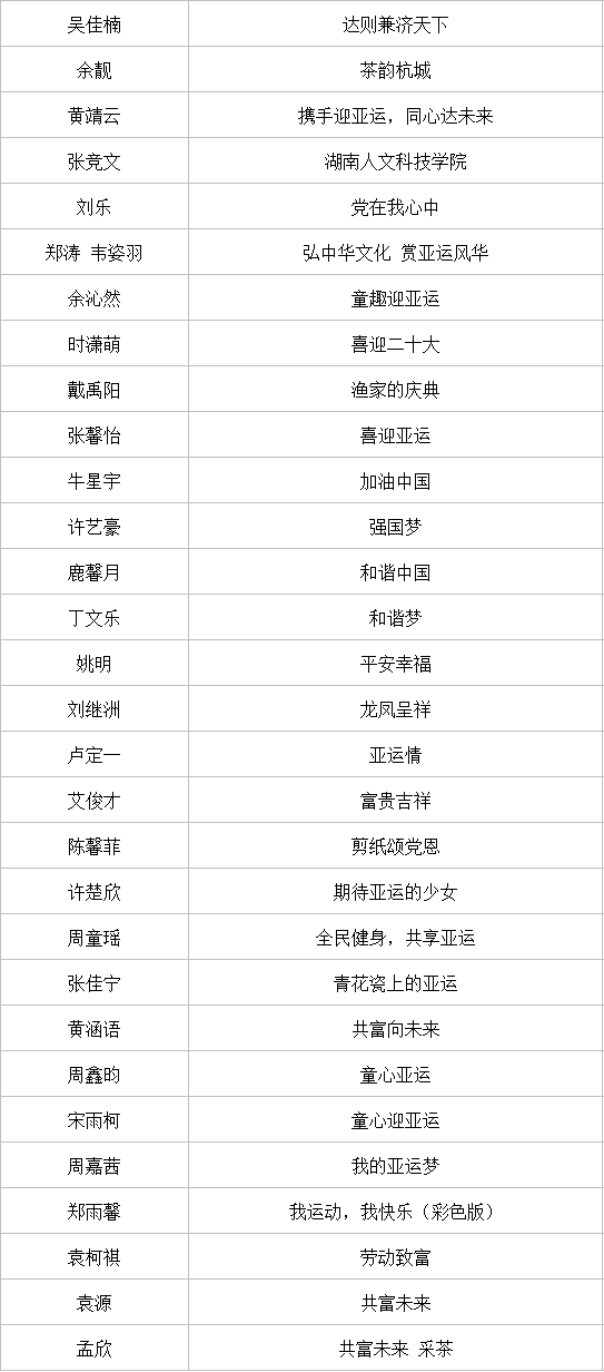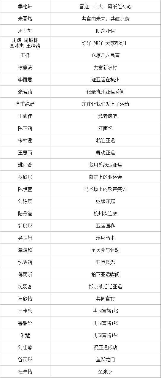近日,以“童心迎亚运 共富向未来”为主题的全国青少年创意剪纸邀请展评审工作圆满结束。本次邀请展以进一步弘扬传承剪纸非遗技艺,激励广大青少年以昂扬的姿态迎接亚运、助力亚运为目标,展现青少年对美好生活的新期待,由浙江省民间文艺家协会剪纸专业委员会指导、杭州工艺美术博物馆(杭州中国刀剪剑、扇业、伞业博物馆)主办、杭州日报报业集团杭州网承办。通过专家评委现场评审,获奖名单公布如下: