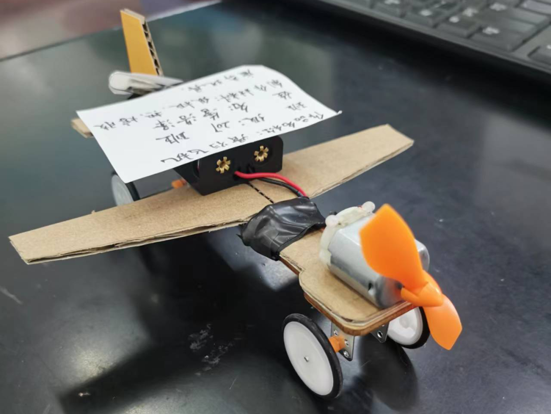 这是利用太阳能光板原理制成的可以“上天”的纸盒“动力飞机”。