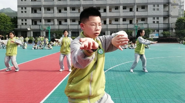 近年来,分水初中教育集团在七年级持续开展太极拳课程学习。每年10月份,学校都会邀请本地太极俱乐部的资深爱好者向七年级学生授课,每周三节课,每次45分钟授课时间。通过半个学期左右的课程学习,同学们都能基本掌握太极要领,并打出一套完整的拳式。