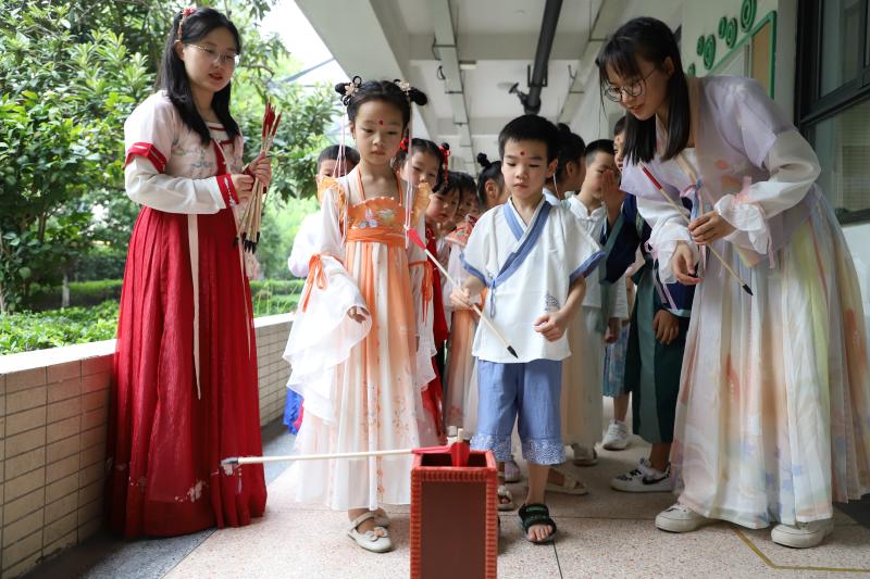 乐学,也要乐玩。在班主任的组织下,各班在欢乐的氛围中玩起了击鼓传花和投壶游戏,体验着宋代人的古老游戏,欢乐的笑声传遍校园。