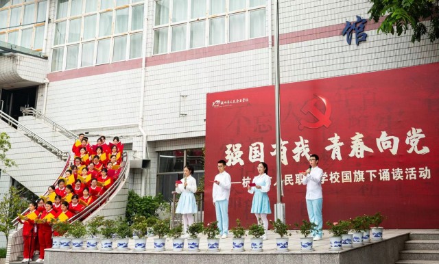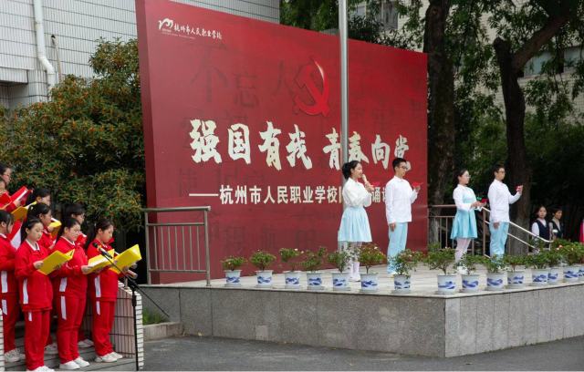 昨日,党的二十大胜利召开,习近平总书记在开幕式上的讲话犹在耳边。今天,杭州市人民职业学校举行了“强国有我,青春向党”国旗下诵读活动。