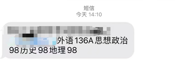 这名同学是女生,来自一所老牌重高。她的成绩是外语136A,思想政治98,历史98,地理98,共计430分。