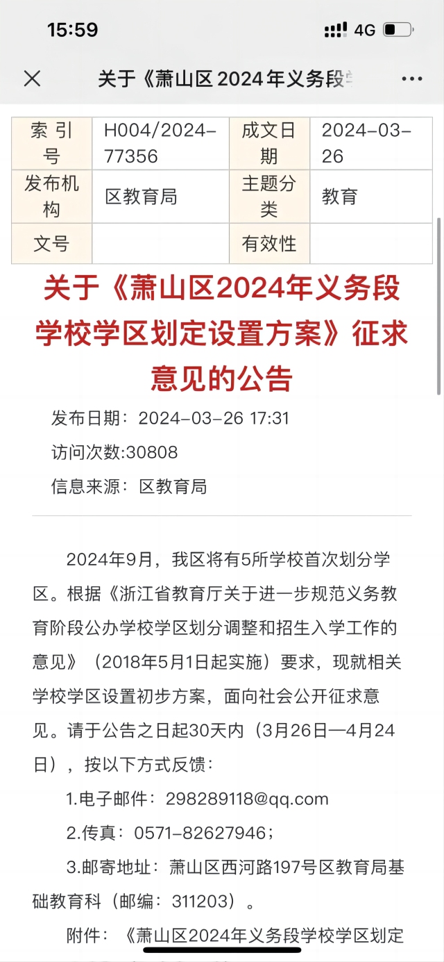 近日,萧山区教育局发布了关于《萧山区2024年义务段学校学区划定设置方案》征求意见的公告: