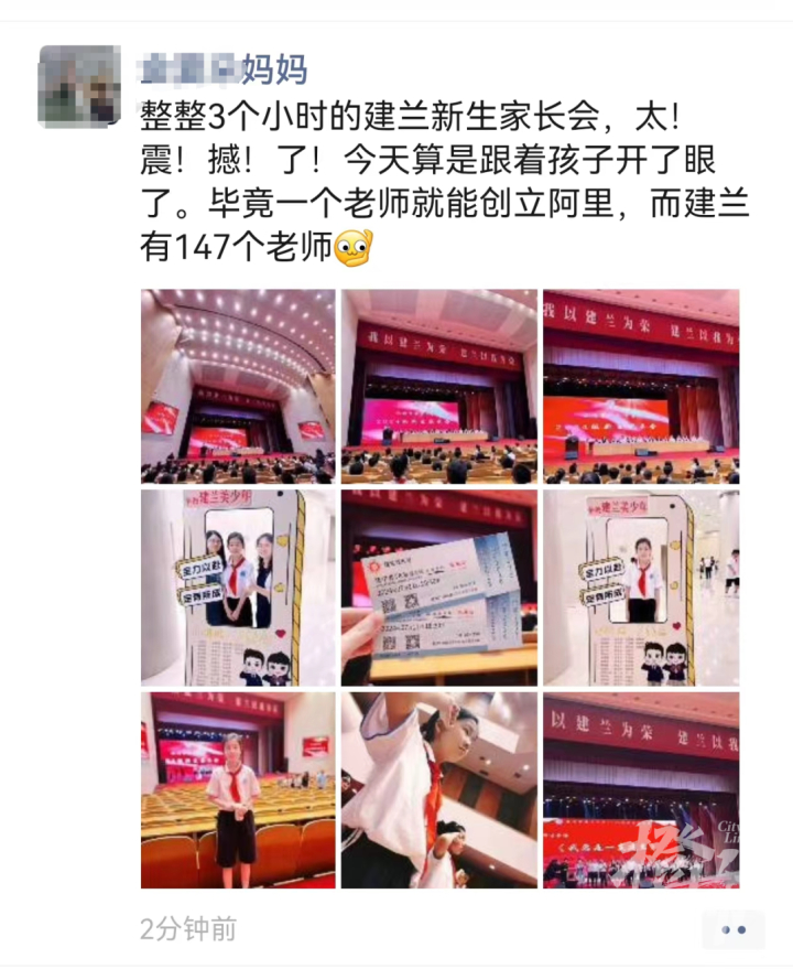 上周,建兰中学在浙江省人民大会堂举行了2024级新生家长会,家长会从18:30开始,一直到21点多才结束,整整3个小时的家长会,让不少家长感叹:太震撼了!
