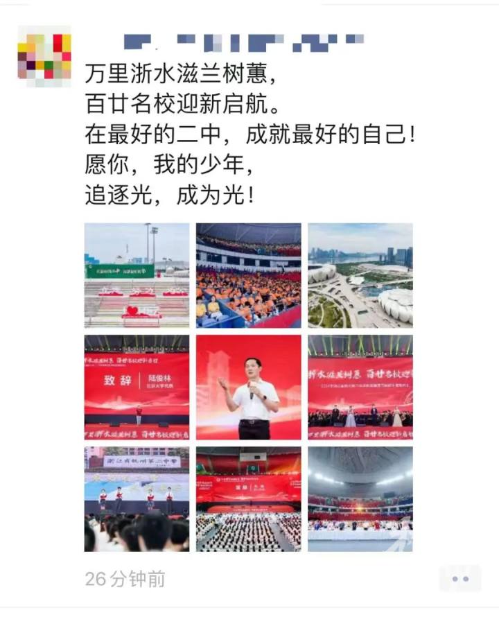 今天,不少家长在朋友圈不约而同晒出了“小莲花”,不是在看演唱会,而是杭州第二中学教育集团五校新生报到典礼,在这里举办。