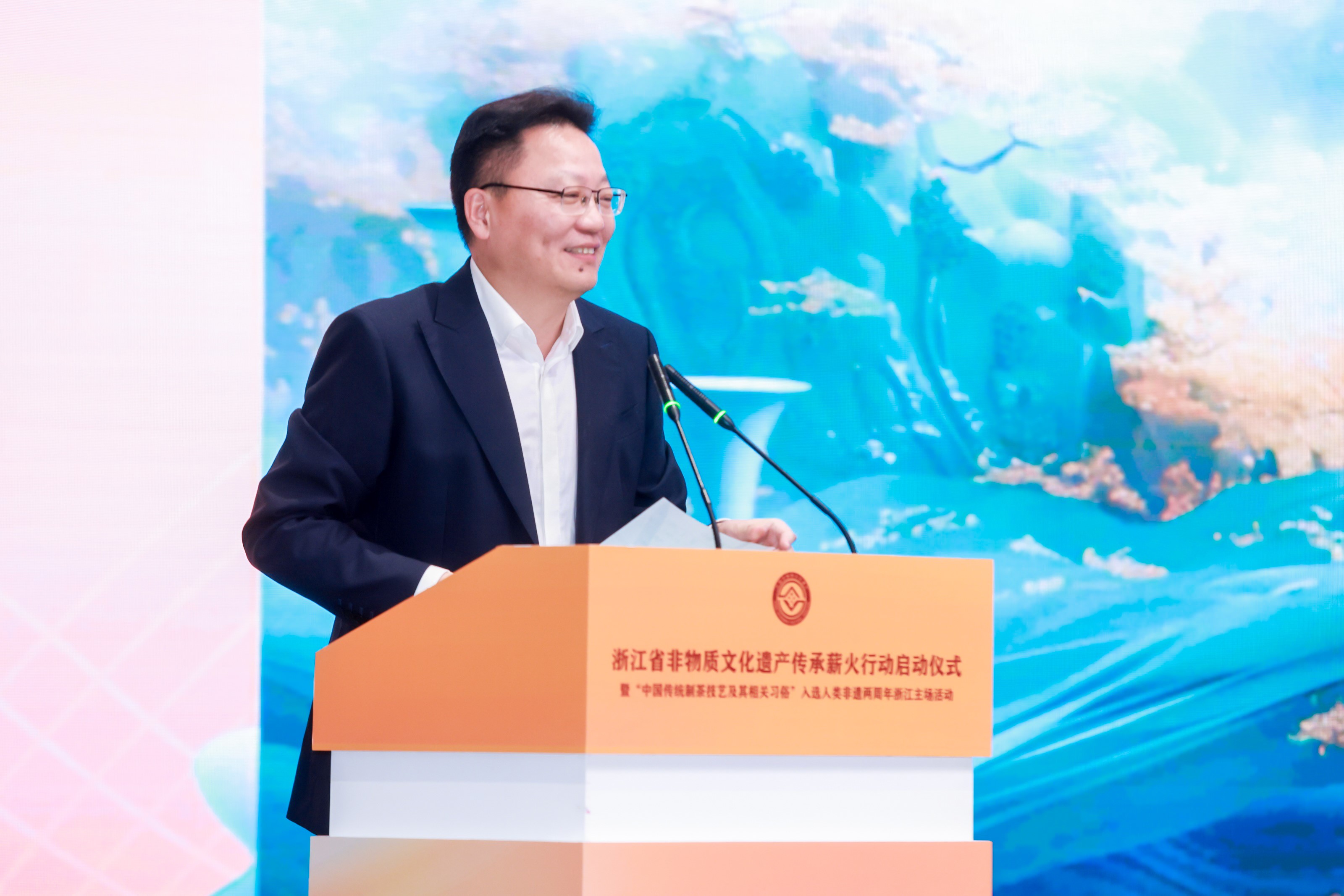 11月9日,由省文化广电和旅游厅主办的全省非物质文化遗产传承薪火行动启动仪式暨“中国传统制茶技艺及其相关习俗”入选人类非遗两周年浙江主场活动在杭州余杭举行。省文化广电和旅游厅党组书记、厅长陈广胜出席并讲话,省文化广电和旅游厅党组成员、副厅长储晓焱主持。