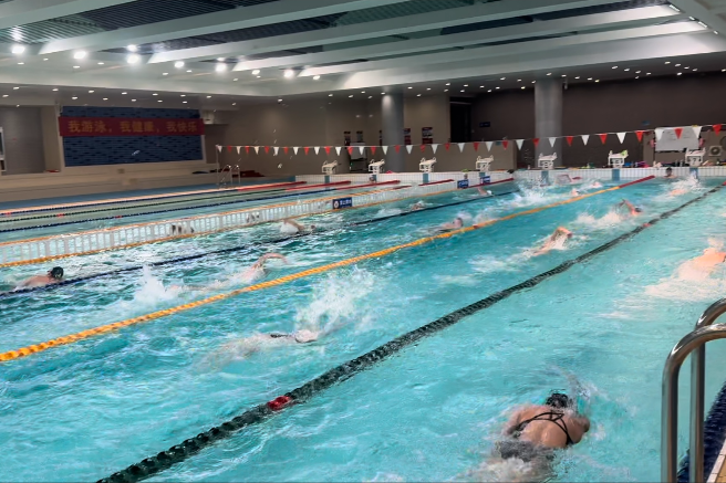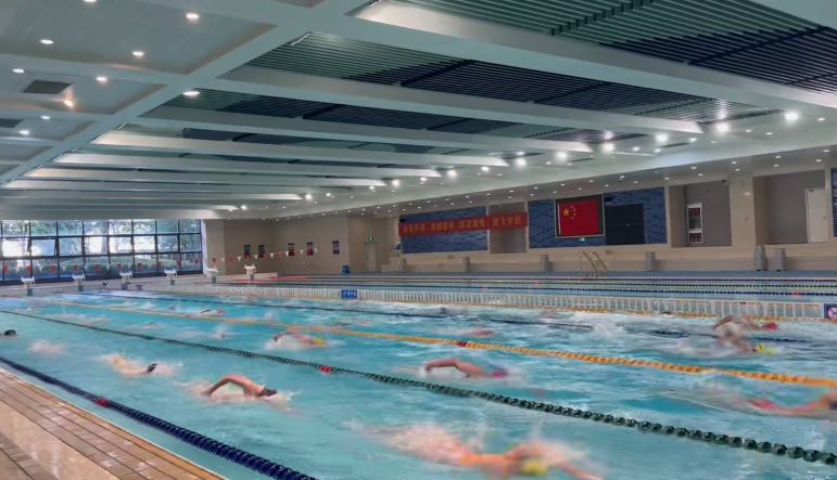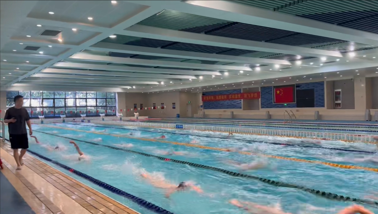 国庆假期,杭州街头洋溢着休闲氛围,而杭州高级中学(钱江校区)游泳馆内却一派热火朝天的训练景象。杭高游泳队的参赛队员集结于此,全力备战即将到来的比赛。