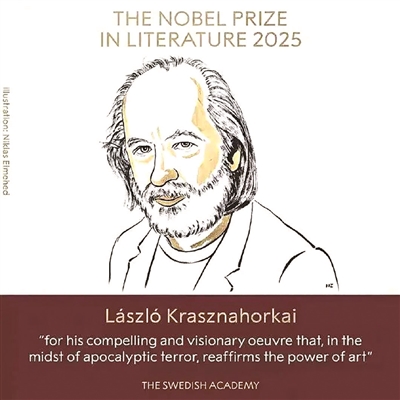 昨天晚上,2025年诺贝尔文学奖揭晓。得主是匈牙利作家克拉斯诺霍尔卡伊·拉斯洛(László Krasznahorkai),颁奖词是:“以表彰他引人入胜且富有远见的作品,在世界末日的恐怖中,再次证明了艺术的力量。”