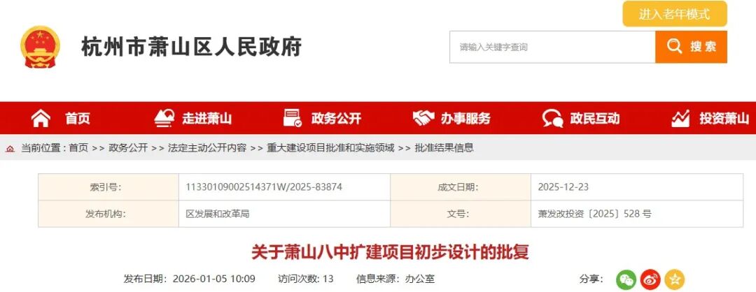 近日,萧山区发展和改革局公布了关于萧山八中扩建项目初步设计的批复。具体位置、工期……一起来看。