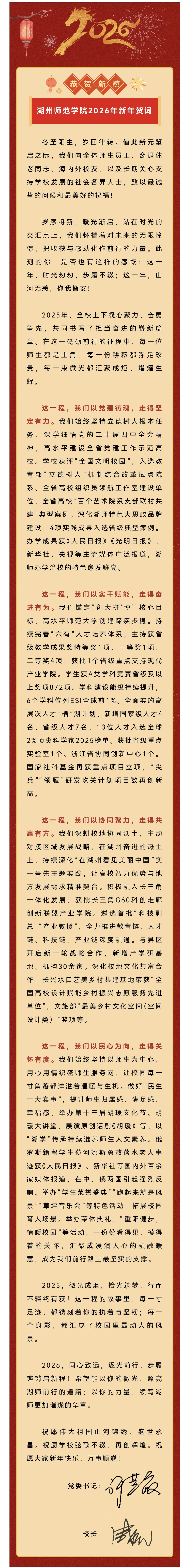 湖州师范学院新年贺词。学校供图