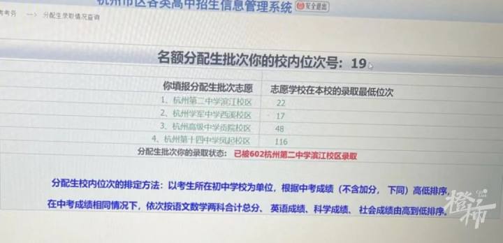 近日,2024杭州中考进行了名额分配生录取。杭州市教育局官网公布了各学校的录取名单。有不少家长晒出孩子的录取结果。