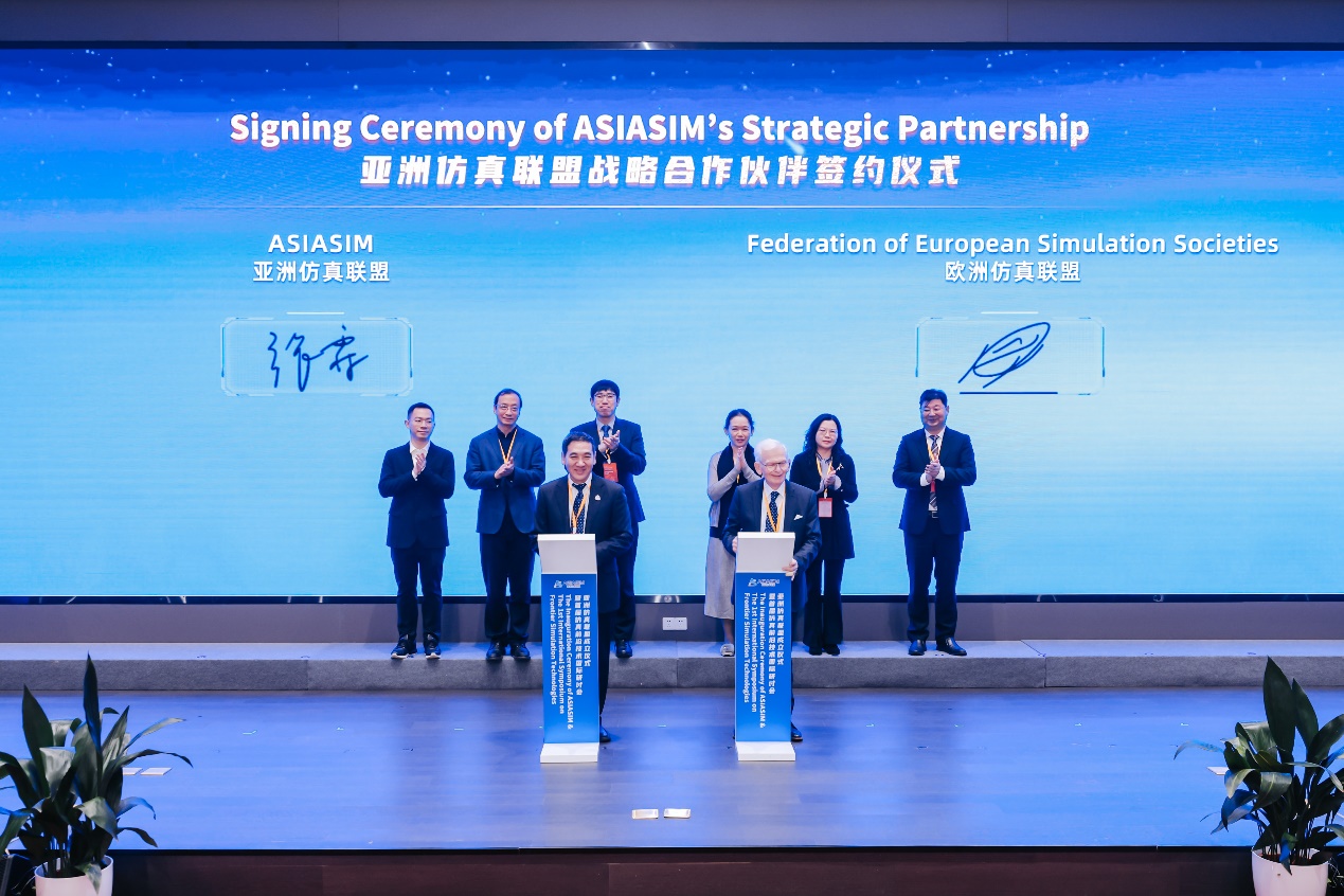 启动仪式上,亚洲仿真联盟首任理事长张霖同欧洲仿真联盟代表勒曼、亚洲仿真联盟首任秘书长翁敬农与全球仿真技术领军企业达索系统公司大中华区首席技术总监颜学专签署战略伙伴合作协议。
