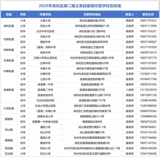 暑期家长看护有困难、托管确有需求的余杭区2024学年一至八年级在籍学生。
