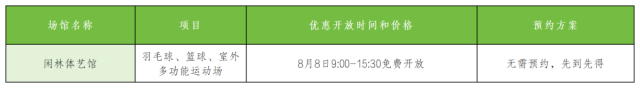 余杭区闲林体艺馆向大众惠民开放羽毛球、篮球、室外多功能运动场。