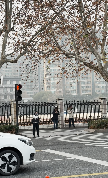 7点左右,学军中学西溪校区考点外,部分家长送孩子到校门口后便匆匆离开,没有过多停留。而多数守在校门口的家长,或是围上红围巾,或是身穿红衣服。尽管天气寒冷,一位妈妈仍特意穿上橙色旗袍,用这“心想事‘橙’” 的美好寓意,为孩子加油鼓劲。