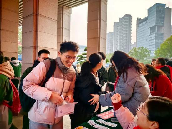 一名高一同学特意到场感受首考氛围。他向记者透露,自己已经完成模拟选课,目标是 “物化生” 组合,并为参加首考的学长学姐送上 “金榜题名” 的诚挚祝福。