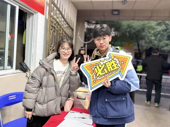老师温情护航为考生鼓劲