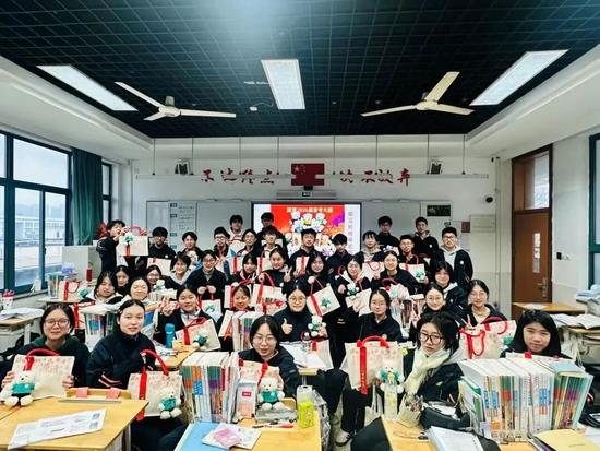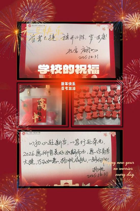 杭州第十一中学为高三全体学生举办温馨祝福活动,以物载情、以言寄意,祝愿高三学子:笔底风云阔,胸中星斗明;首考携佳绩,一举入青云。