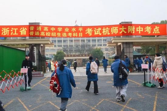 7:15,杭州高级中学贡院校区考点,陆续有考生进场。