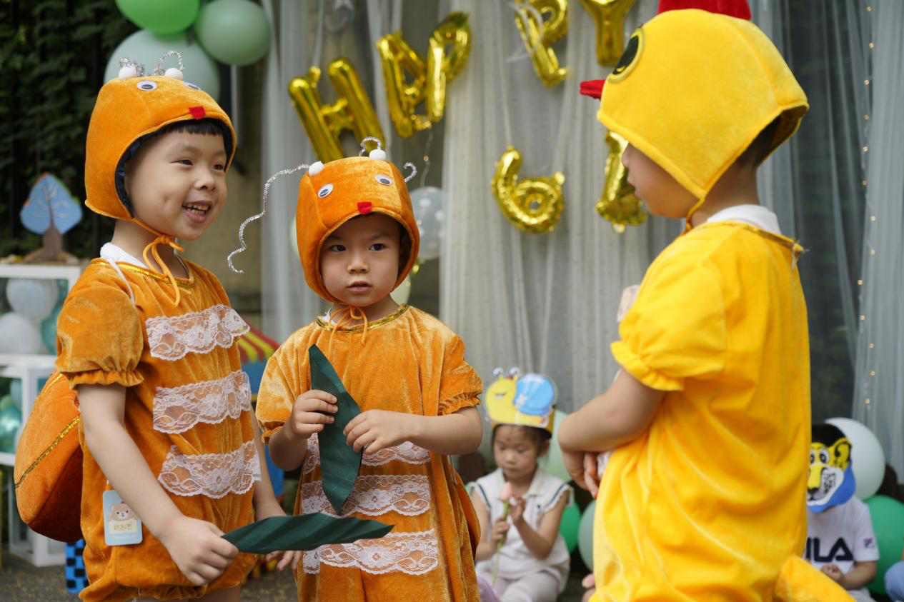 杭州东城幼儿园园长邱红燕在采访中表示,把学习“藏”进玩耍过程里,是东城幼儿园的特色教育手段,也是一直在坚持的教育理念。“孩子们在表演剧本故事的同时,会不知不觉地将故事中好的精神与启示迁移到现实生活中来;同时,在和伙伴们合力完成排练和表演的过程中,孩子们与人交流,自我表达等能力也会增长。不同于说教,我们认为‘润物细无声’的效果可能会更好。”