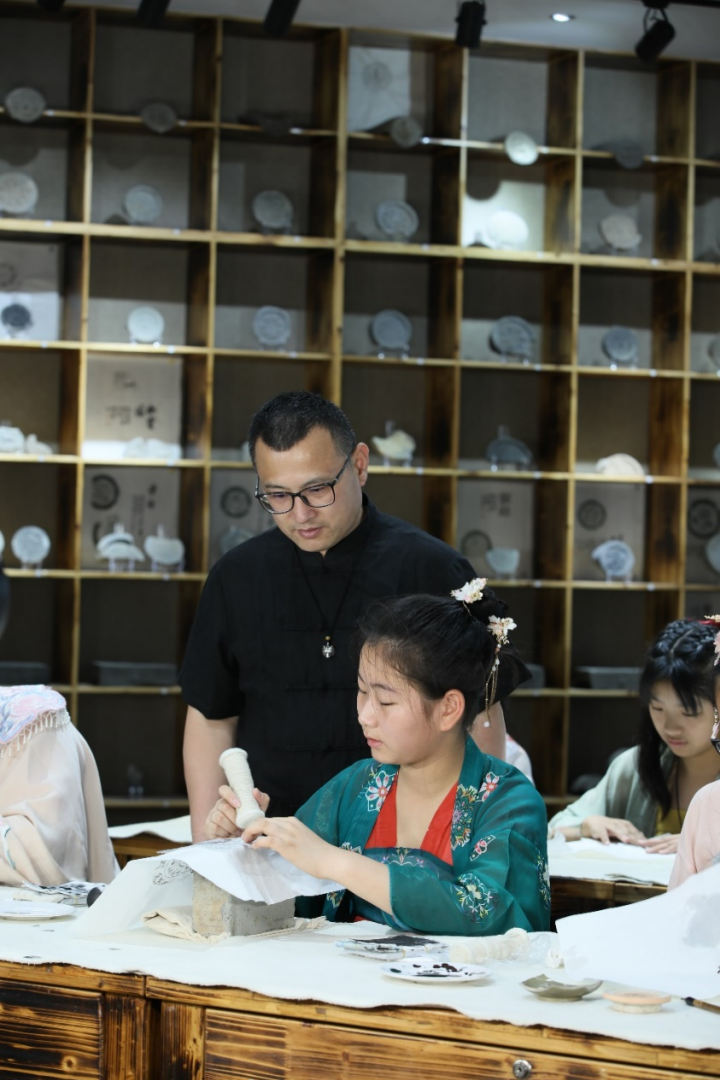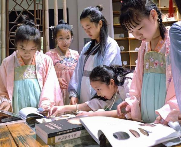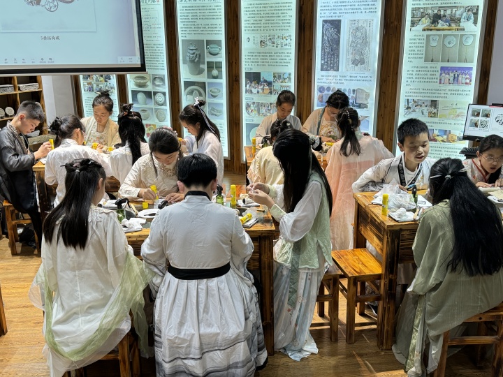 “‘片庐’既是古陶瓷标本博物馆,又是锦灰堆拓艺术实践工作坊。在这里,‘片庐小仙’们可以零距离触摸金石文物,为古陶瓷做文创设计,全流程学习非遗锦灰堆拓技艺……”赵士华介绍。为了让课堂更有氛围感,学生们每次上课都会穿汉服,沉浸式体验传统文化。