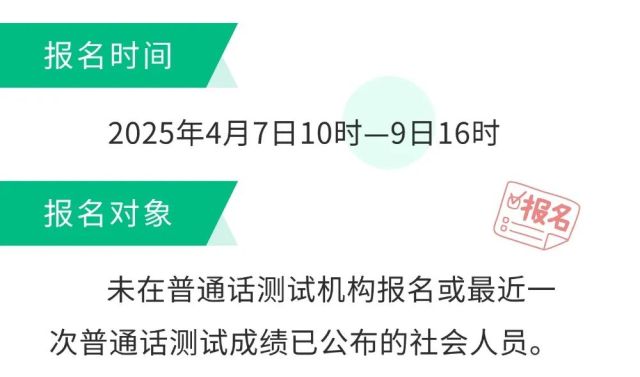 近日,杭州市教育考试院发布2025年4月普通话水平测试报名公告。本次报名时间为4月7日10时—4月9日16时,测试时间为4月12日。