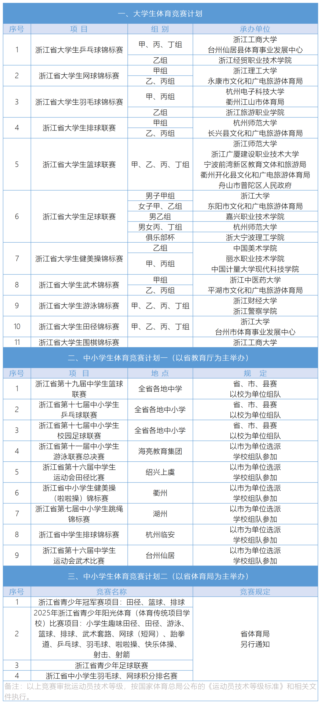 近日,省教育厅、省体育局公布2025年省级学生体育竞赛计划,列入本年度计划的大中小学生体育竞赛共24项。
