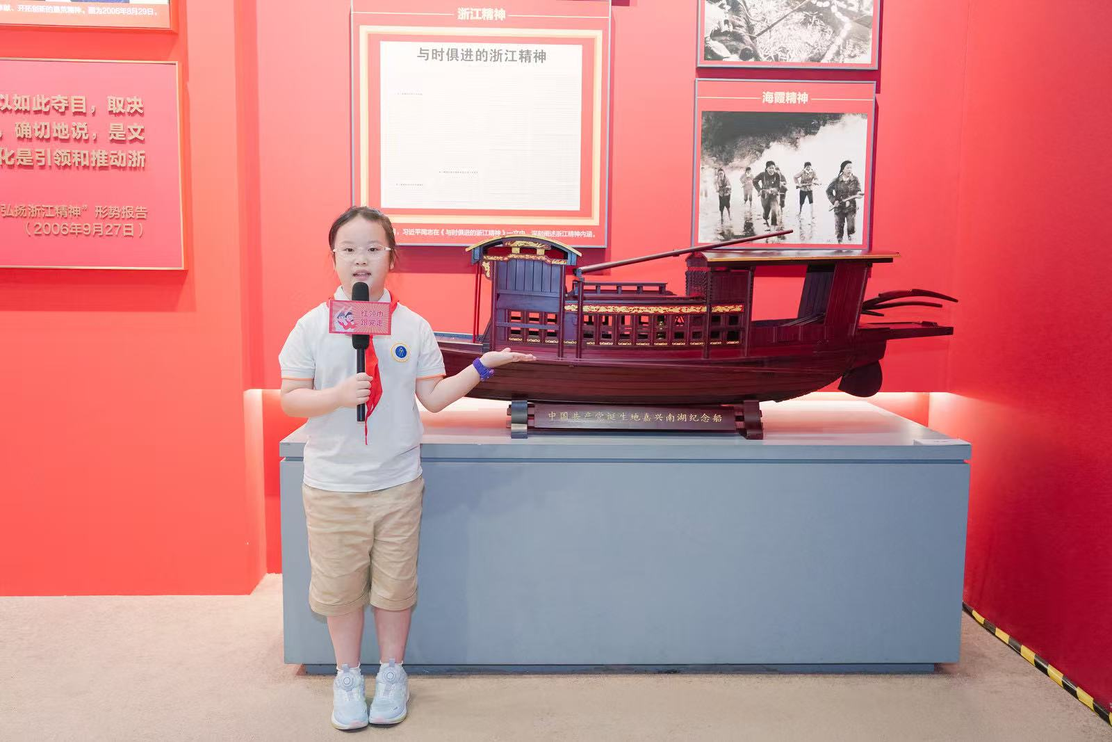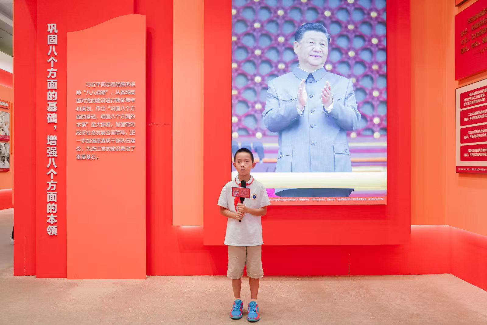 章李硕:今天在展馆看到杭州以前的样子,和现在差好多呀,党就像魔术师一样厉害!背讲解词有点难,我错了好几次,但我没哭,一直练。当讲解员时,大家都认真听我讲,我好开心!原来只要努力,就没有做不到的事。红领巾,我以后会更努力的,做个让你骄傲的小朋友!
