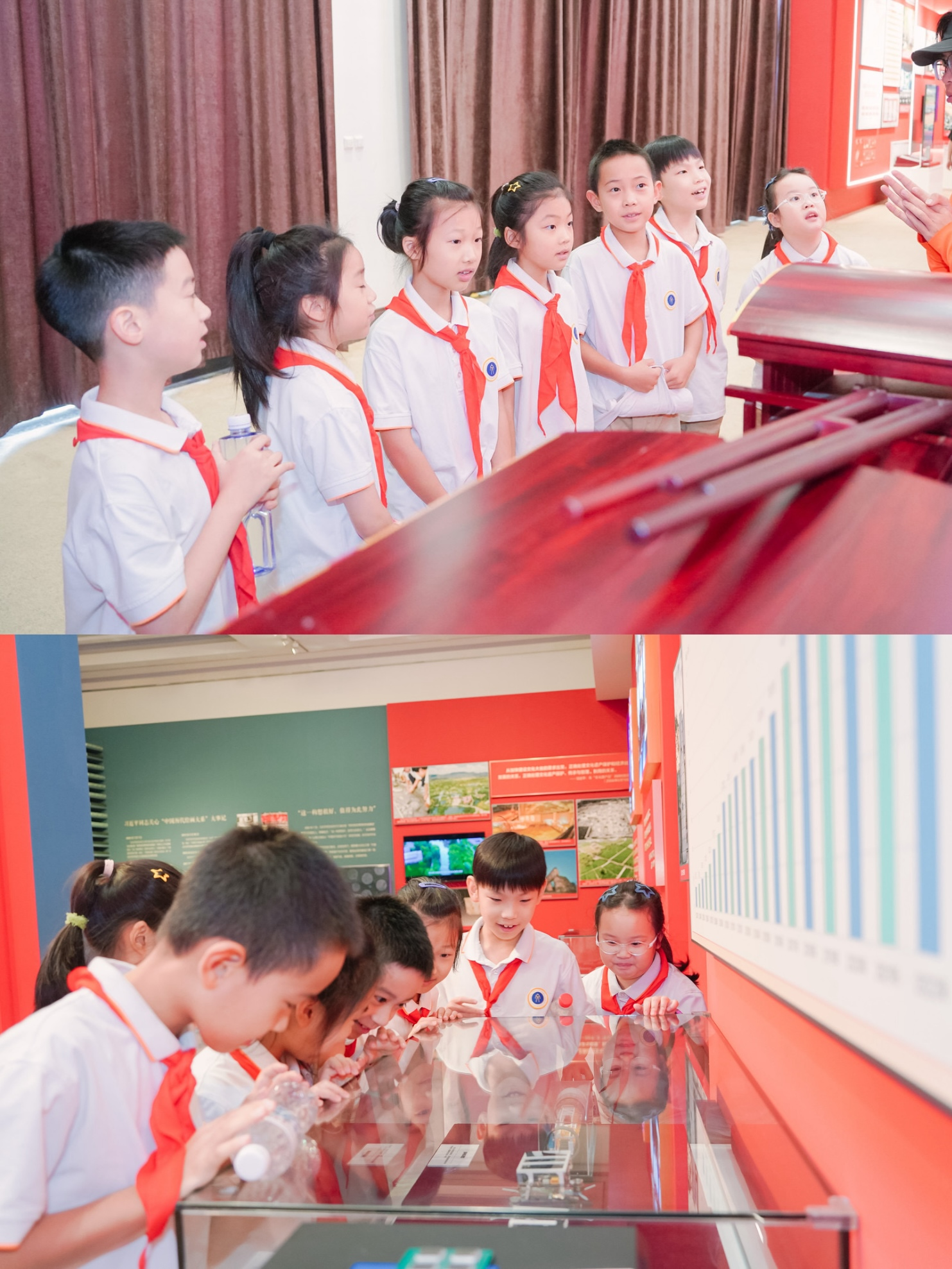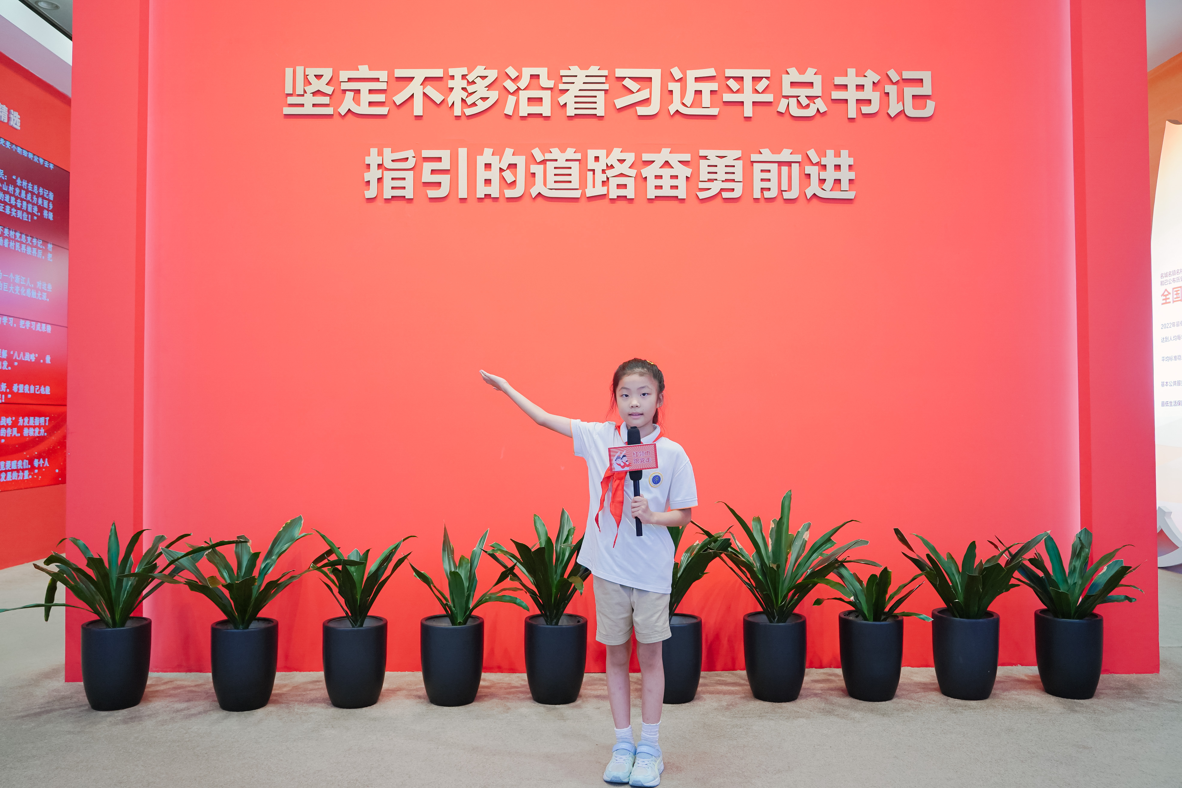 活动的高潮,队员们来到习爷爷曾走过的地方,庄重地诵读红领巾语录。“热爱祖国、热爱人民、热爱中国共产党”的誓言回荡在展馆中,每一个字都承载着少年们的赤诚。随后,队员们化身为小小解说员,向在场的参观者解说红领巾文化知识,响应红领巾的号召,立志争做有理想、有担当的时代先锋。他们稚嫩却坚定的声音,传递着新时代少年对党的热爱与对未来的期许。