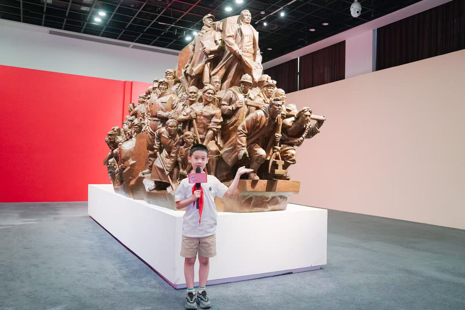 杜旌言:今天在展览馆超开心!红色问答我答对好多题。背讲解词时出了一些小插曲,还好小伙伴们及时提醒我,才完美结束。站在习爷爷走过的地方读语录,我的声音有点抖,但心里热乎乎的。原来红领巾这么厉害,以后我要天天戴它,学好多党史故事,做个让它更亮的好孩子!