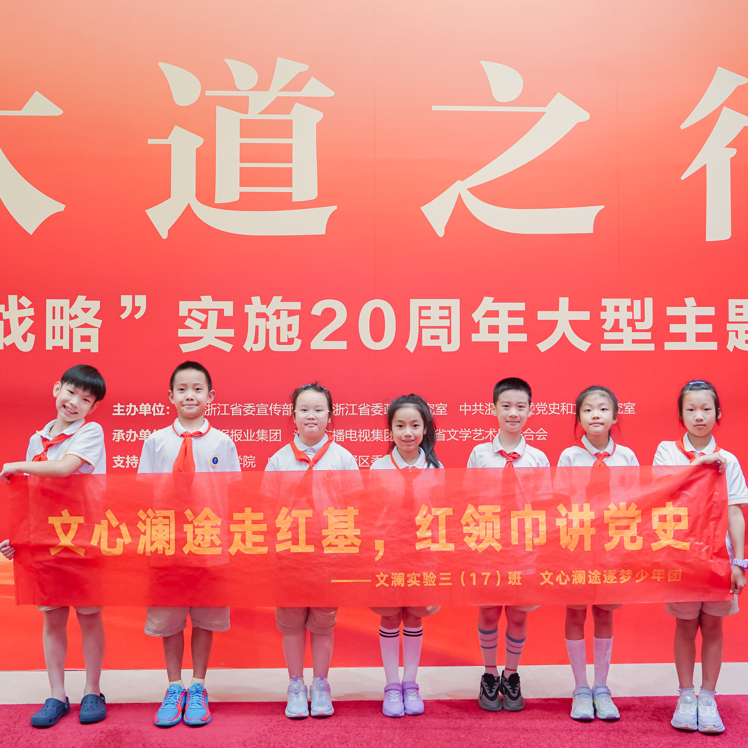 七月的杭州,红色精神薪火相传。7月29日下午,杭州市文澜实验三(17)班“文心澜途逐梦少年团”的7位小队员一起走进浙江展览馆,开启了一场“红色澜途走红基,红领巾讲党史”的主题实践活动。队员们在红色教育的浸润中汲取力量,用实际行动传承红色基因,展现了新时代少年的风采。