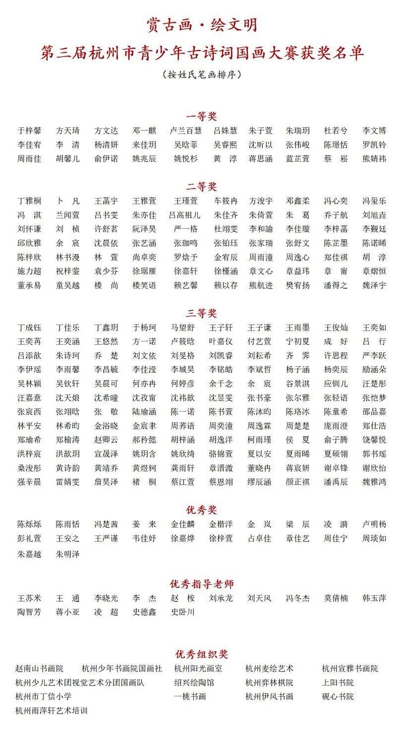 十月,丹桂飘香。“赏古画·绘文明”第三届杭州市青少年古诗词国画大赛终评工作结束,获奖名单正式揭晓。