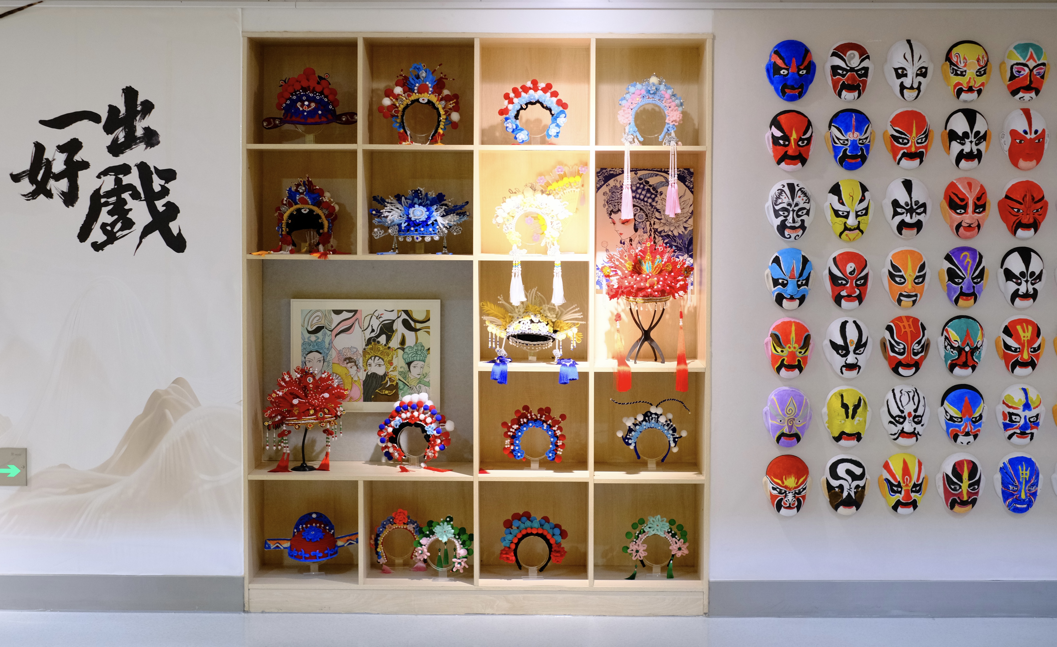 这场书画展是学校学生们项目化课程学习的成果展示。他们不仅在剪纸、绘画中习得技能,更在凤冠制作这类挑战中,与传统文化深度对话。剪纸里藏着校园的四季景致,绘画中绘出戏曲人物的灵动神采,纸鸢上印着新时代少年的奇思妙想,学生们将对非遗传统文化的敬意、对校园生活的热爱,尽数融入每一件作品。