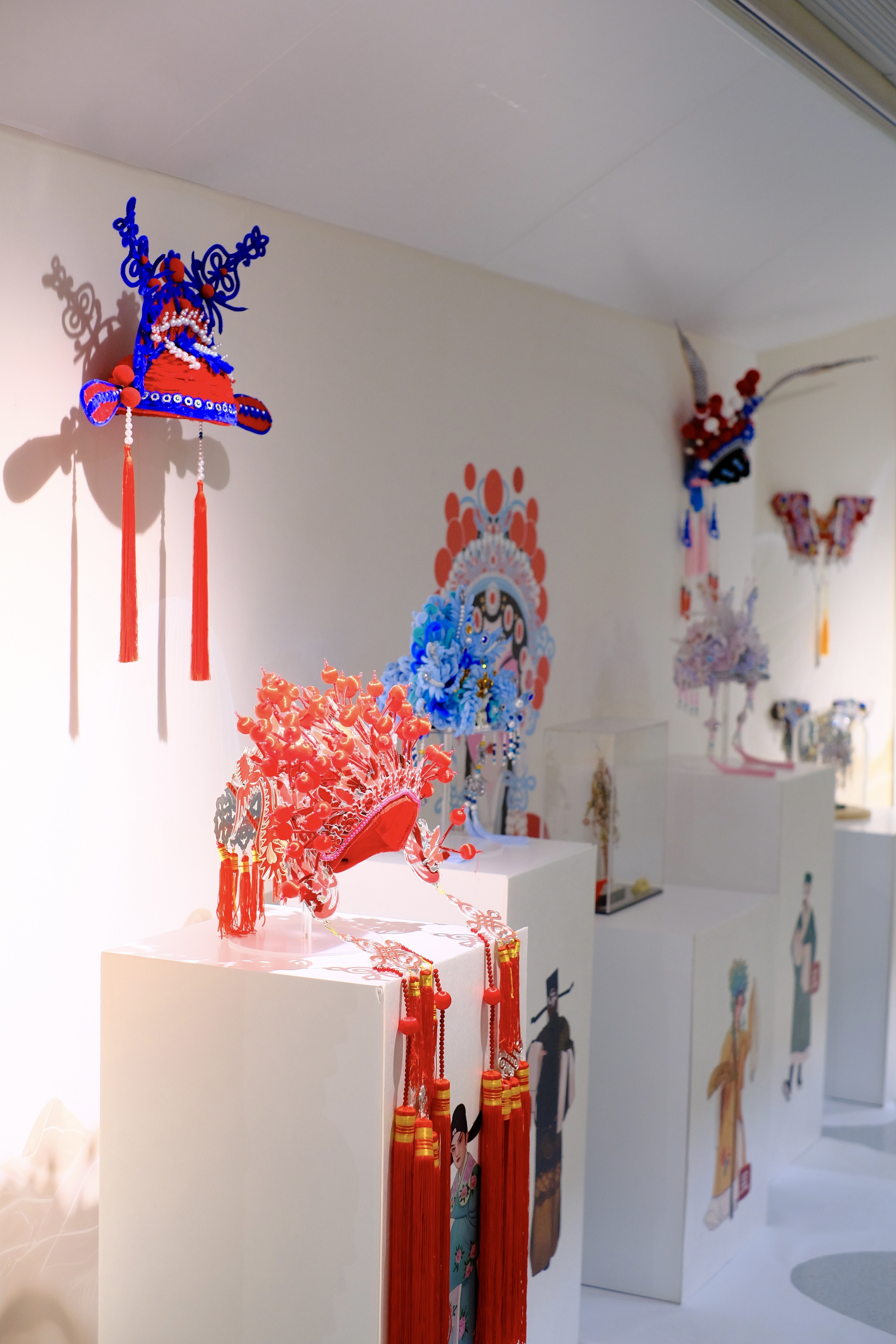 六(5)班的展位前,一顶顶璀璨的戏曲凤冠尤为吸睛,这些精美的作品竟是同学们用上百根扭扭棒一点点手搓成型,再精心拼贴上珍珠制作而成!“制作凤冠比想象中难太多了,”六(5)班的应芸伊同学分享道,“尤其是把扭扭棒搓出流畅的曲线,还要保持对称,我们失败了好多次。”但正是这个过程,让他们对非遗技艺有了全新的认识。“亲手做了一遍才知道,戏曲演员头上戴的每一顶真正的凤冠,背后藏着多少工匠的心血和智慧,是无数个‘慢工出细活’。”