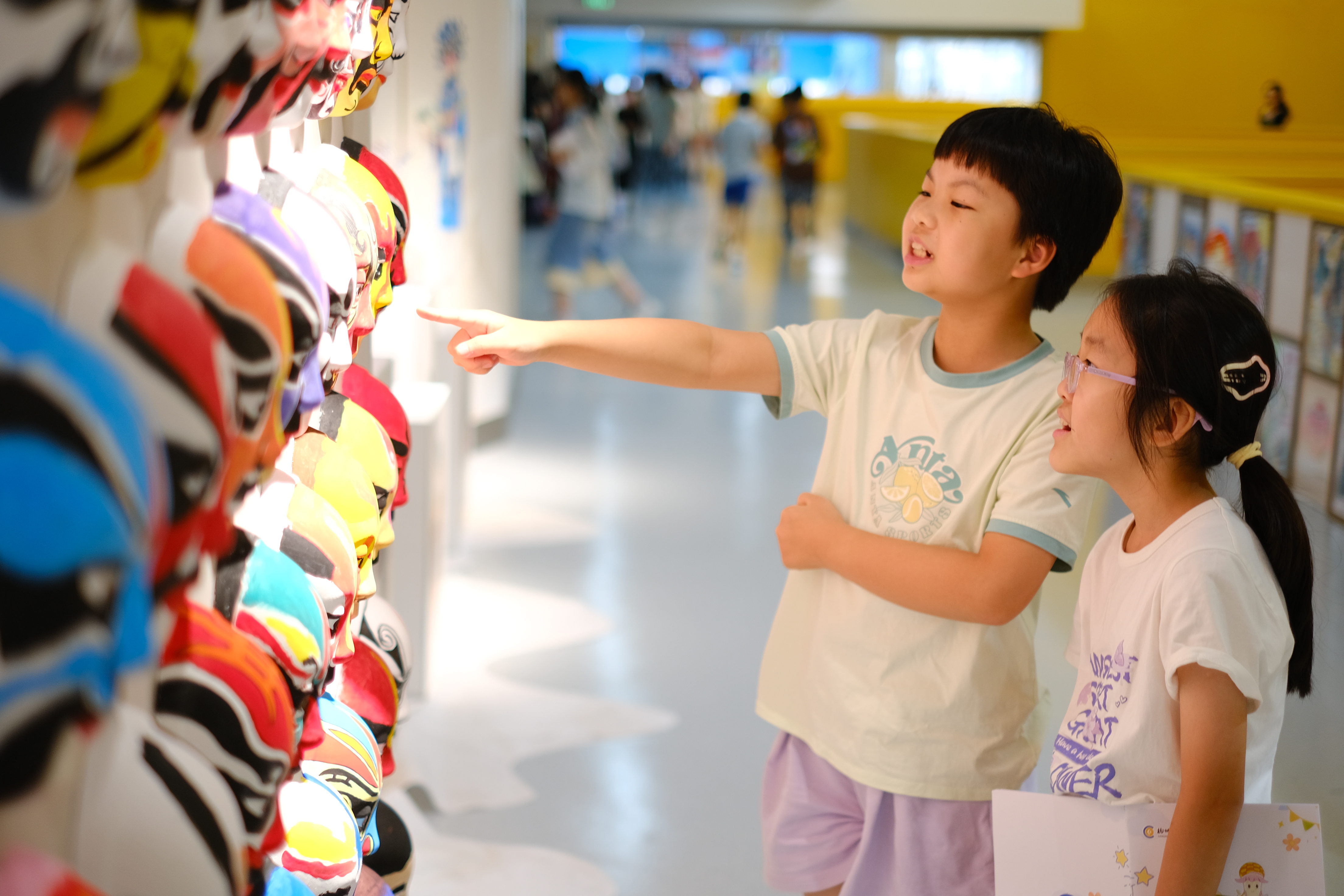 剪纸、藻井、醒狮、纸鸢、戏曲、葫芦……这些浸润着中华传统文脉的非遗元素,在崇文世纪城实验学校学生的巧思与创作中焕发出鲜活生机。10月15日,学校第八届学生艺术节迎来了重头戏——六年级“墨润童心,薪传家国”主题班级书画展,瞬间点燃了校园的艺术氛围!全体六年级同学用画笔和巧手,与非遗进行了一场跨越时空的精彩对话。