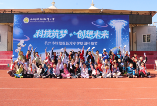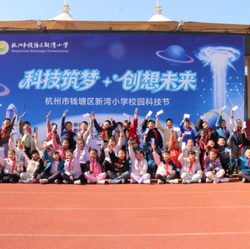 “快看!水彩笔在水里开出花了!”“我的空气炮把烟雾推出去好远!”11月19日,杭州市钱塘区新湾小学的操场上满是欢呼声,一场以“科技筑梦・创想未来”为主题的校园科技节热闹开场,从趣味实验到前沿科技体验,20个特色摊位让全校学生沉浸式过足了“科学瘾”。