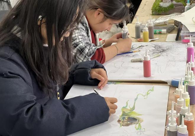 据悉,这场已持续六年的创作活动,今年聚焦杭州民间故事与传说的可视化表达。 学生们从《桐庐民间传说故事集》中汲取灵感,围绕“金牛传说”“麻姑娘娘”等故事,以及桐君、严光等历史人物形象,通过立体装置、综合拼贴、平面插画等形式,将静态的文字转化为可触可感的视觉场景,让本土传说变得鲜活可感。