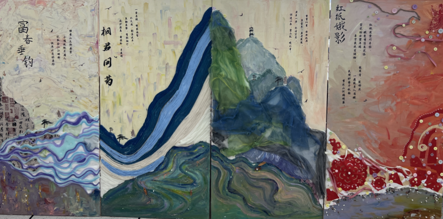 近日,在浙江工商大学杭州商学院(以下简称“杭商院”)的视觉创作课堂上,学生们正用彩色卡纸、废旧塑料、布片、树枝等材料,创作一系列以“富春山居文化”为主题的作品。