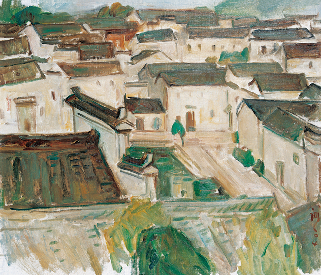 展厅内,名家名作熠熠生辉,引得观者驻足流连。其中,詹建俊的《秋》、赵友萍的《白桦林》笔触厚重凝练,气势雄浑强烈;老油画家王流秋的《孔子庙》、黎冰鸿的《人体》《苗族少女》与费以复的《海浪》,格调雅致脱俗,色彩鲜亮明丽;肖锋、全山石、汪诚一、徐永祥等艺术家的作品,凭借娴熟灵动的表现技法与精妙考究的形式构图,为观者带来别具一格的视觉享受。
