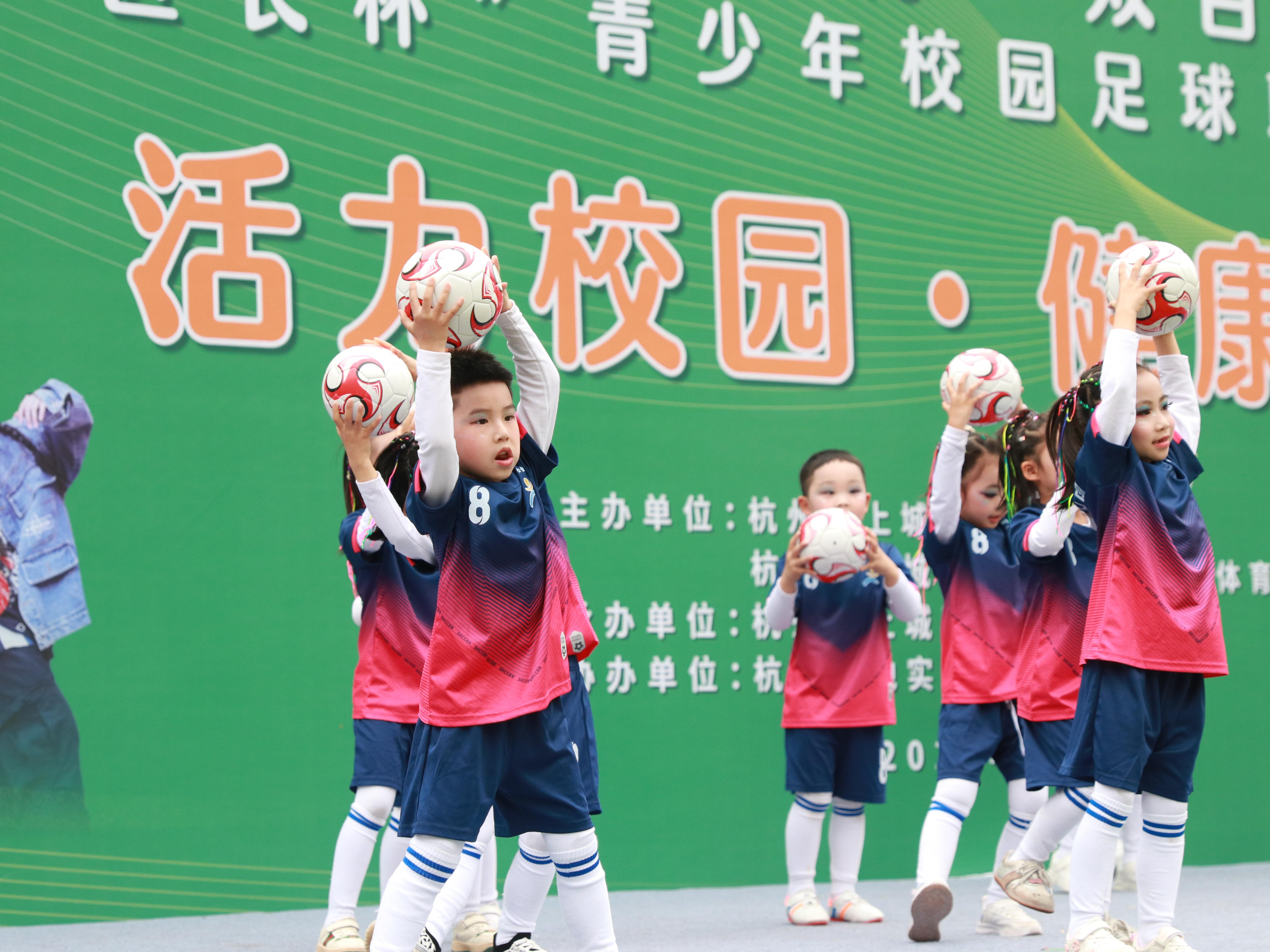 活动在杭州市天杭实验学校活力四射的啦啦操表演中拉开帷幕。杭州市教育局德体卫艺处副处长梁树波在致辞中对上城区近年来在青少年体育工作特别是校园足球改革方面取得的成果给予充分肯定。