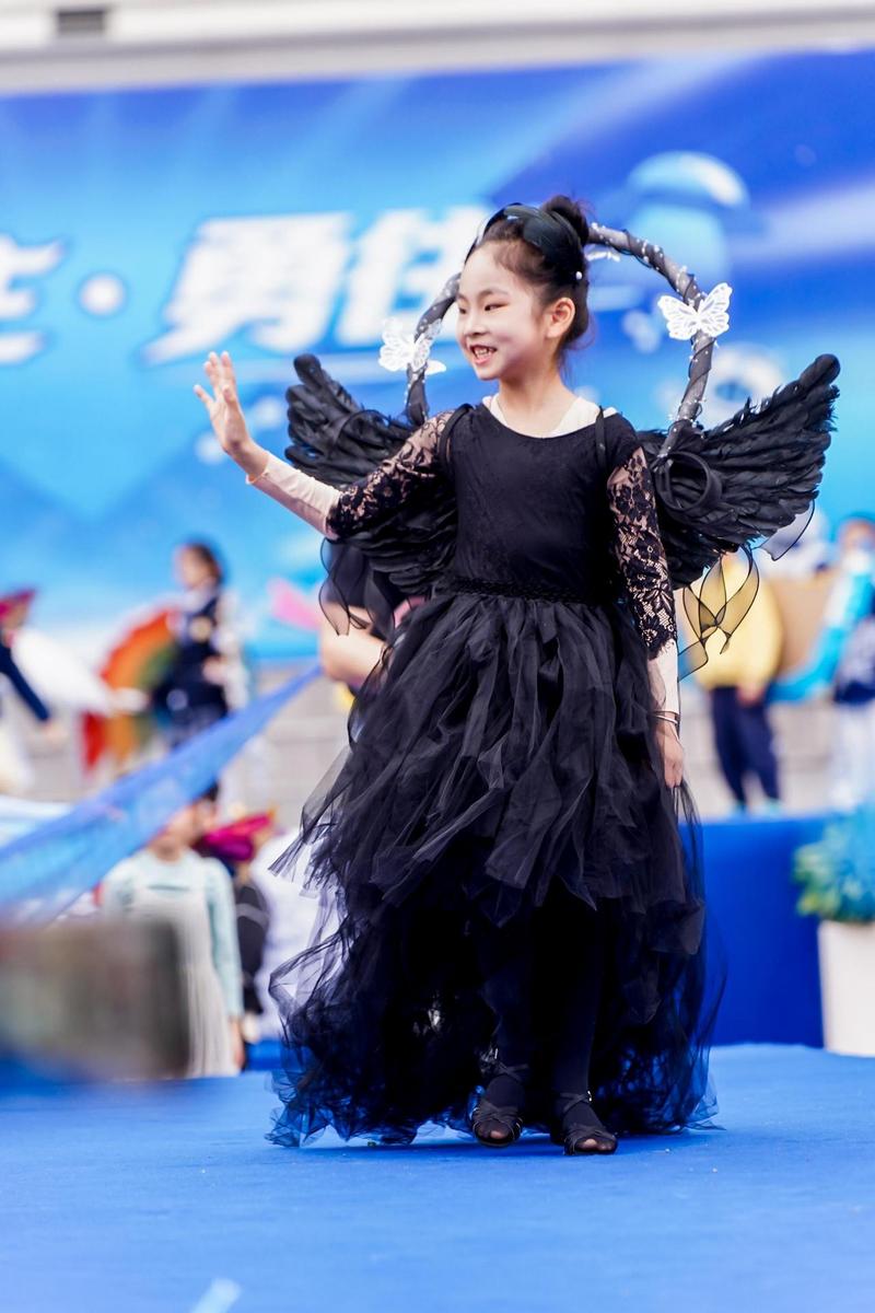 T台上,孩子们或轻盈转身,裙摆般的翅膀随之扬起,或振翅欲飞,眼神里全是探索的光芒。整个校园成了梦想与欢乐的海洋。